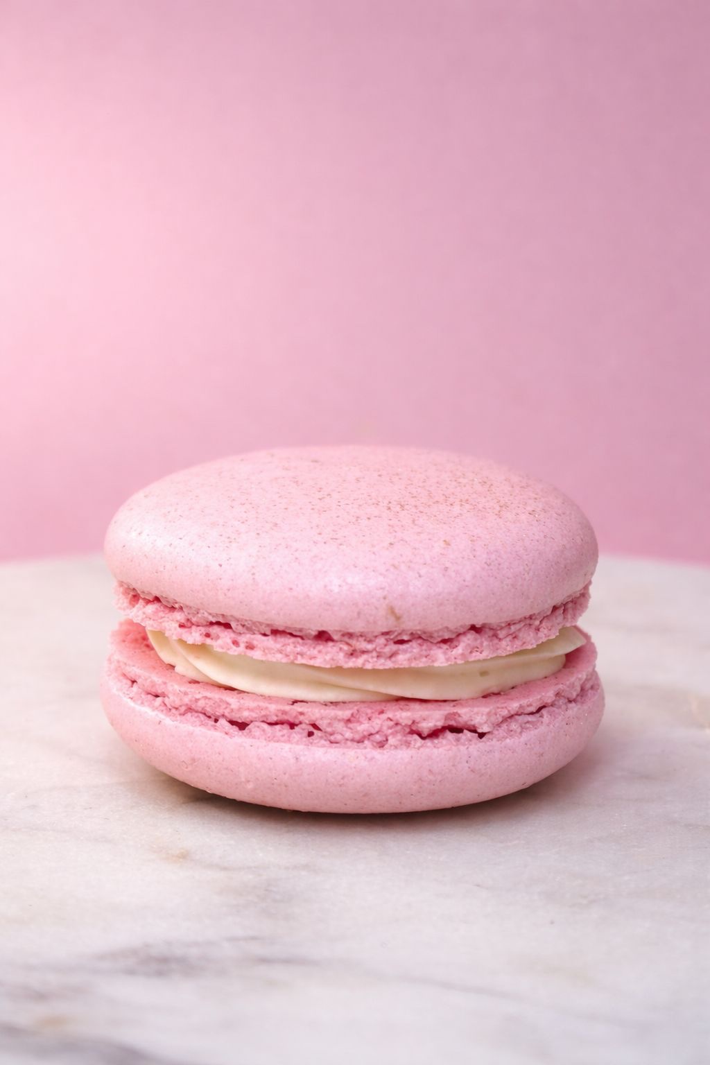 10x Svetlo ružová Makronka so sviežou jemne citrusovou ganache, doplnená Malinový džemom (bezlepku)